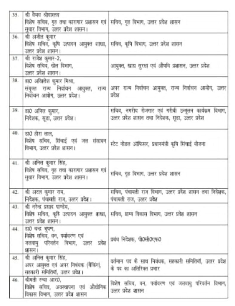 लखनऊ: योगी आदित्यनाथ सरकार ने गुरुवार देर रात बड़ा प्रशासनिक फेरबदल करते हुए 46 IAS अधिकारियों का ट्रांसफर कर दिया. उत्तर प्रदेश सरकार ने IAS संजय प्रसाद को वर्तमान विभागों के साथ-साथ फिर से प्रमुख सचिव गृह बनाया है. दीपक कुमार अपर मुख्य सचिव, गृह, वीज़ा, पासपोर्ट तथा सतर्कता विभाग उत्तर प्रदेश शासन के प्रभार से अवमुक्त करते हुए अपर मुख्य सचिव, बेसिक शिक्षा विभाग, यूपी शासन के पद का अतिरिक्त प्रभार प्रदान किया गया है.
