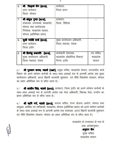 - नई पोस्टिंग: महाप्रबंधक, मध्यप्रदेश राज्य इलेक्ट्रॉनिक्स विकास निगम, भोपाल; अवर सचिव, विज्ञान एवं प्रौद्योगिकी विभाग (अतिरिक्त प्रभार)