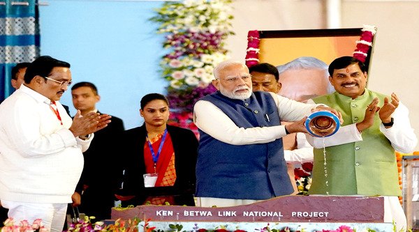 प्रधानमंत्री श्री मोदी ने कहा कि केन-बेतवा लिंक परियोजना से बुंदेलखंड क्षेत्र की समृद्धि और खुशहाली के द्वार खुलेंगे। बुंदेलखंड क्षेत्र में बूंद-बूंद पानी के लिए संघर्ष किया है, परंतु पूर्ववर्ती सरकारों ने जल संकट का कोई स्थाई समाधान नहीं निकाला। आजादी के सात दशक बाद भी राज्यों के बीच नदियों के जल के लेकर विवाद चलते रहे, परंतु उन्हें दूर करने का कोई ठोस प्रयास नहीं किया गया। जब अटल जी की सरकार बनी तो उन्होंने नदी जोड़ो के रूप में इसका स्थाई हल निकाला और उसका कार्य भी शुरू कर दिया गया, परन्तु 2004 के बाद वह बंद कर दिया गया। आज अटल जी का नदी जोड़ने का सपना मध्यप्रदेश की भूमि पर साकार होने जा रहा है। प्रधानमंत्री श्री मोदी ने जल शक्ति और जल संसाधन के विकास के लिए लिए बाबा साहेब अंबेडकर के विजन और किए गए प्रयासों की सराहना भी की।
