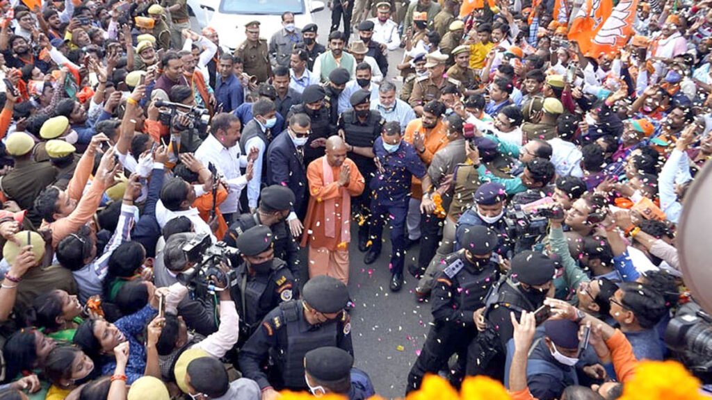 हाथों में कमल निशान और झंडे थामे लाखों लोग मुख्यमंत्री योगी आदित्यनाथ के साथ साथ चलते हुए एनडीए गठबंधन जिंदाबाद और प्रधानमंत्री नरेंद्र मोदी जिंदाबाद के नारे लगाते रहे। लोगों ने मुख्यमंत्री योगी पर फूल बरसाए, वहीं कई स्थानों पर फुलझड़ियां और पटाखे जलाकर उनका स्वागत किया।