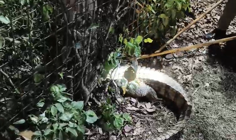 घटना उस समय की है जब कर्मचारी अपनी ड्यूटी के लिए नाइट शिफ्ट में फैक्ट्री जा रहे थे। जैसे ही वाहनों की हेडलाइट की रोशनी सड़क के बीचों-बीच पड़ी, सामने एक विशालकाय मगरमच्छ को देखकर हड़कंप मच गया। कर्मचारी तुरंत अपने वाहन रोककर पीछे हट गए। शोर-शराबा सुनकर मगरमच्छ ने सड़क से भागने की कोशिश की, लेकिन इसी आपाधापी में वह सड़क किनारे लगी लोहे की जाली में बुरी तरह फंस गया।