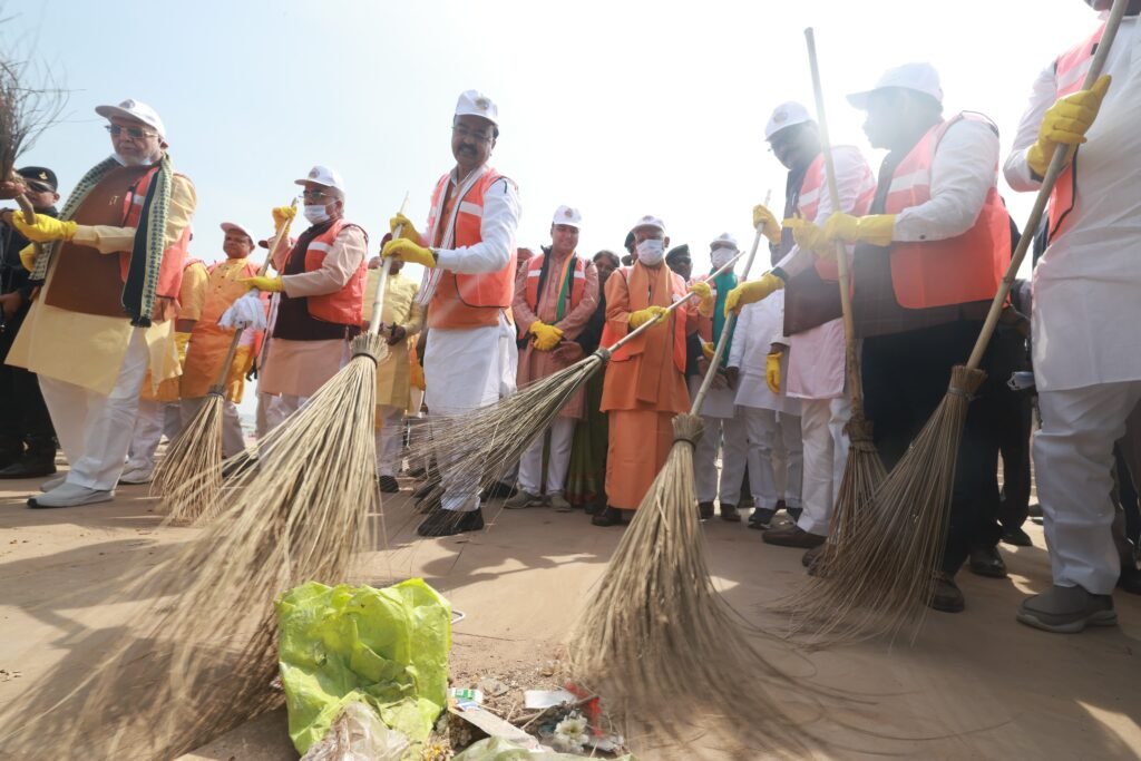 मां गंगा की पूजा-अर्चना कर मुख्यमंत्री ने संगम तट पर प्रारंभ किया स्वच्छता अभियान