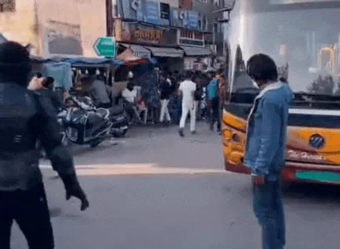 चलती बस रोककर किया स्टंट