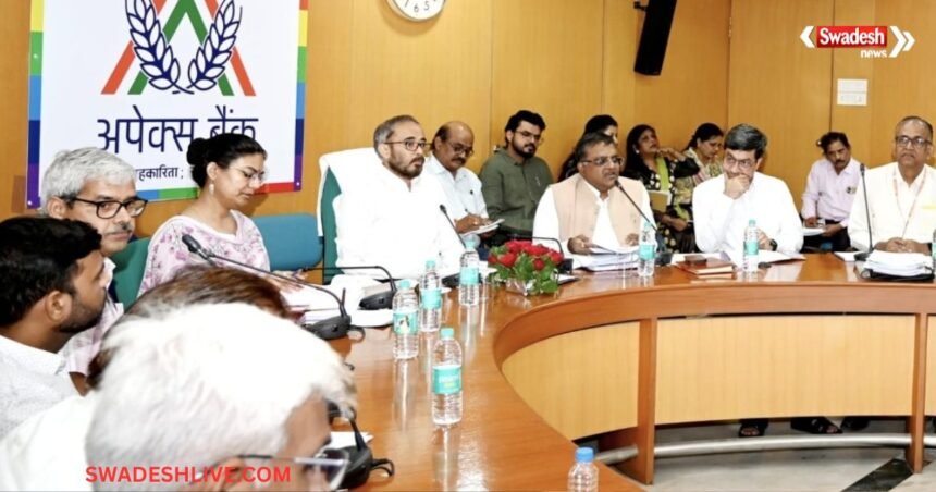 Apex Bank Target : अपेक्स बैंक में आज प्रदेश के 38 जिला सहकारी केन्द्रीय बैंकों के मुख्य कार्यपालन अधिकारियों की बैठक की अध्यक्षता करते हुये प्रमुख सचिव सहकारिता एवं प्रशासक अपेक्स बैंक श्री डी.पी.आहूजा नेे केसीसी व ऋण वितरण, पैक्स कम्प्यूटराईजेशन, अमानत संग्रहण आदि की समीक्षा करते हुए निर्देश दिये कि सभी सी.ई.ओ. आगामी वित्तीय वर्ष में प्रदेश में 10 लाख नये सदस्यों को पैक्स के माध्यम से जोड़ने के लक्ष्य को लेकर योजनाबद्ध रणनीति बनाकर कार्य सम्पादित करें । उन्होंने कहा कि इस कार्य में वर्तमान में भले ही चुनौतियां ज्यादा हैं, लेकिन इसके दूरगामी सकारात्मक एवं लाभप्रद परिणाम से मध्यप्रदेश का सहकारी साख आन्दोलन अत्यन्त सुदृढ़ एवं सशक्त बनेगा।