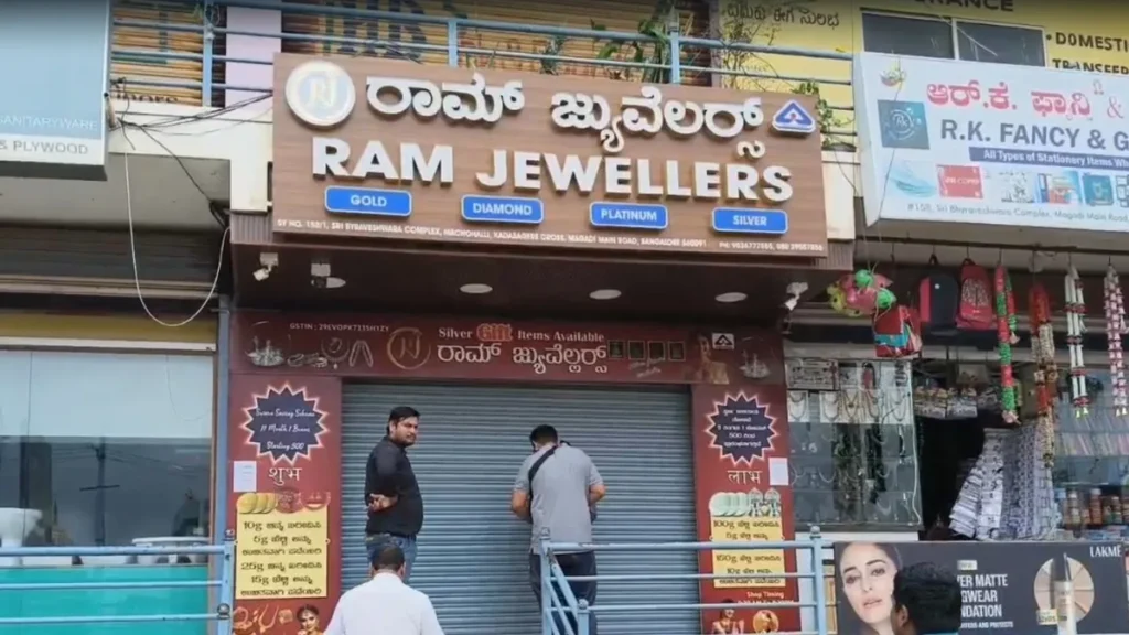 कर्नाटक की राजधानी बेंगलुरु के बाहरी क्षेत्र मादनायकनहल्ली में एक ज्वेलरी शॉप में लूट की वारदात सामने आई है। घटना 24 जुलाई की रात करीब 8:30 बजे हुई, जब राम ज्वेलर्स नामक दुकान लगभग बंद होने वाली थी। इसी दौरान चार बदमाश एक कार से पहुंचे, जिनमें से तीन नकाबपोश दुकान के अंदर घुसे और बंदूक की नोक पर 18 लाख रुपये के आभूषण लूट लिए।
