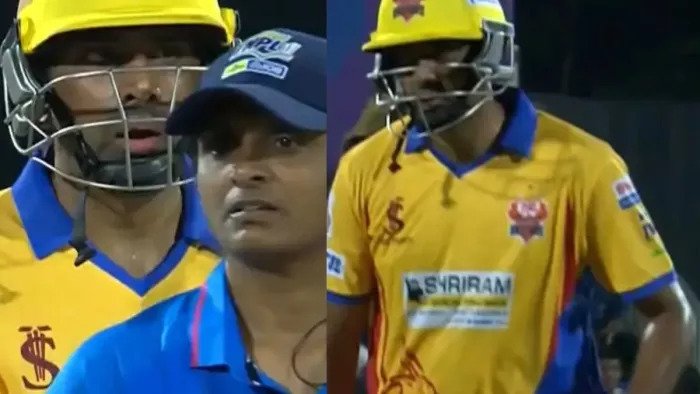 मैच के दौरान एक विवादास्पद LBW फैसले के चलते अश्विन और अंपायर के बीच तीखी बहस हो गई। डिंडीगुल ड्रैगन्स और IDream तिरुप्पुर तमिझंस के बीच खेले गए इस मुकाबले में अश्विन को पांचवें ओवर की आखिरी गेंद पर LBW आउट दिया गया। वह फैसले से बेहद नाराज दिखे और अंपायर कृतिका से मैदान पर ही बहस करने लगे।