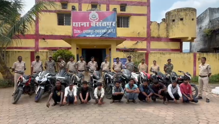 बलरामपुर-रामानुजगंज (छ.ग.) – बसंतपुर थाना पुलिस ने शातिर मोटरसायकल चोरी गिरोह का भंडाफोड़ करते हुए 10 आरोपियों को गिरफ्तार किया है। इस कार्रवाई में कुल 11 चोरी की मोटरसायकलें बरामद हुई हैं, जिनकी कीमत लगभग 6 लाख 20 हजार रुपये आंकी गई है।