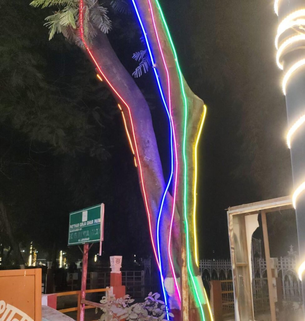 प्रयागराज महा कुम्भ आ रहे आगंतुकों के स्वागत के लिए की कुम्भ नगरी की सड़कों को सजाया गया, शहर के चौराहे सुसज्जित किए गए और बारी है सड़क के दोनों तरह मौजूद हरे भरे वृक्षों को नया लुक देने की । नगर निगम प्रयागराज ने इस संकल्प को धरती पर उतारा है। नगर निगम के मुख्य अभियंता ( विद्युत ) संजय कटियार बताते हैं कि शहर में सड़क किनारे लगे वृक्षों का नया लुक देने के यूपी में पहली बार नियॉन और थीमेटिक लाइट के संयोजित वाली प्रकाश व्यवस्था लागू की गई है। इस नई व्यवस्था में शहर के महत्वपूर्ण मार्गों के 260 वृक्षों के तनों, शाखाओं और पत्तियों में अलग अलग थीम की रोशनी लगाई गई है। इनमें नियॉन और स्पाइरल लाइट्स को इस तरह संयोजित किया गया है जिसे देखकर ऐसा प्रतीत होता है कैसे रात के अंधेरे में पूरा वृक्ष आलोकित हो गया है। शहर से गुजरकर महा कुम्भ जाने वक्ष पर्यटक और श्रद्धालु इस भव्य प्रकाश व्यवस्था का अवलोकन कर सकेंगे।