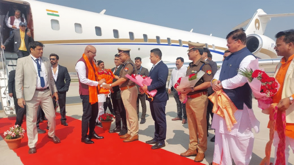 Bharat Jagdeo Ayodhya visit : इससे पहले सुबह उनका प्रतिनिधिमंडल निजी विमान से Maharishi Valmiki International Airport Ayodhya पहुंचा। यहां शंखनाद और सांस्कृतिक प्रस्तुतियों के साथ उनका पारंपरिक स्वागत किया गया।