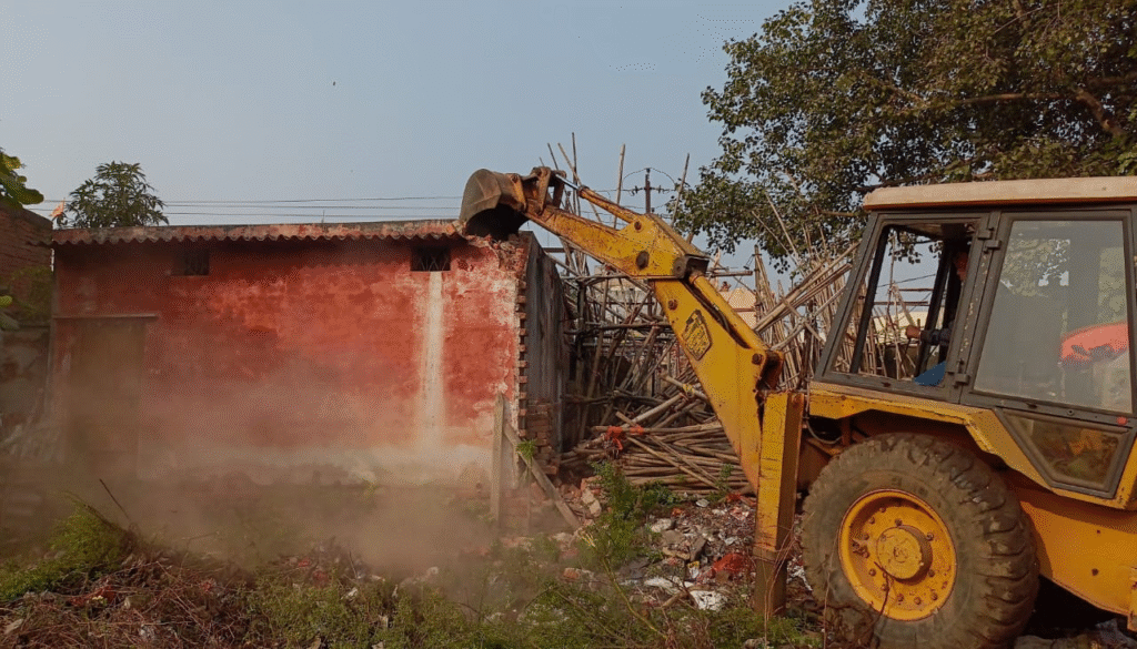 भिलाई: जामुल गुरुघासीदास नगर इलाके में दस दिन पहले हुए गोलीकांड के मुख्य आरोपी करन साव के खिलाफ प्रशासन ने बड़ी कार्रवाई की है। नगर निगम की टीम ने छावनी पुलिस की मौजूदगी में करन साव की कैंप-2 मार्केट स्थित दुकान को बुलडोजर से ध्वस्त कर अतिक्रमण हटाया। घटना के बाद क्षेत्र में पुलिस सुरक्षा बढ़ा दी गई है।