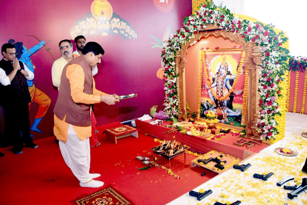 Bhopal: CM Dr. Yadav performed Vijayadashami puja at his residence, including special prayers for Goddess Kali, and also offered prayers to weapons and vehicles.