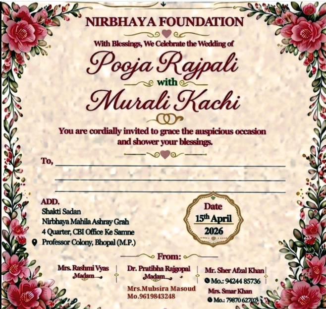 Bhopal Shelter : भोपाल के निर्भया महिला आश्रय गृह में एक भावुक और अलग तरह का विवाह समारोह देखने को मिला, जिसने इंसानियत और अपनत्व की मिसाल पेश की। यहां रहने वाली पूजा का विवाह पूरे रीति-रिवाजों के साथ मुरली से संपन्न कराया गया। इस शादी की खास बात यह रही कि पूजा अपनी छोटी बेटी के साथ इस आश्रय गृह में आई थीं और अब दोनों को एक साथ नया परिवार मिल गया।