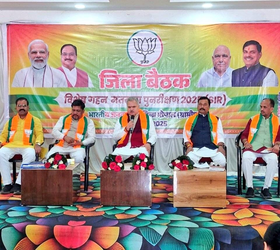 भोपाल: भारतीय जनता पार्टी के क्षेत्रीय संगठन महामंत्री श्री अजय जामवाल ने गुरुवार को एसआईआर के संबंध में भोपाल ग्रामीण के जिला पदाधिकारियों तथा मंडल अध्यक्षों की बैठक को संबोधित किया। उन्होंने कहा कि एसआईआर के बारे में किसी को भ्रमित होने की आवश्यकता नहीं है, यह निर्वाचन प्रक्रिया में किसी भी तरह की अनियमितता को रोकने का शक्तिशाली माध्यम है। उन्होंने जिला पदाधिकारियों को एसआईआर प्रक्रिया के विभिन्न चरणों की विस्तृत जानकारी भी दी।