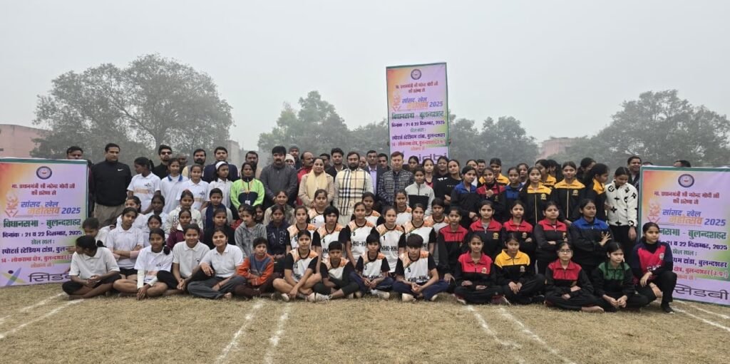 Bulandshahr news: बुलंदशहर विधानसभा क्षेत्र के अंतर्गत सांसद खेल महोत्सव 2025 का आयोजन आवास विकास द्वितीय, टांडा स्पोर्ट्स स्टेडियम, बुलंदशहर में भव्य रूप से किया गया। कार्यक्रम के मुख्य अतिथि सांसद डॉ. भोला सिंह रहे, जबकि विशिष्ट अतिथि के रूप में जिला पंचायत अध्यक्ष अंतुल तेवतिया उपस्थित रहे। कार्यक्रम का संचालन भाजपा जिला महामंत्री संजय गुर्जर ने किया।