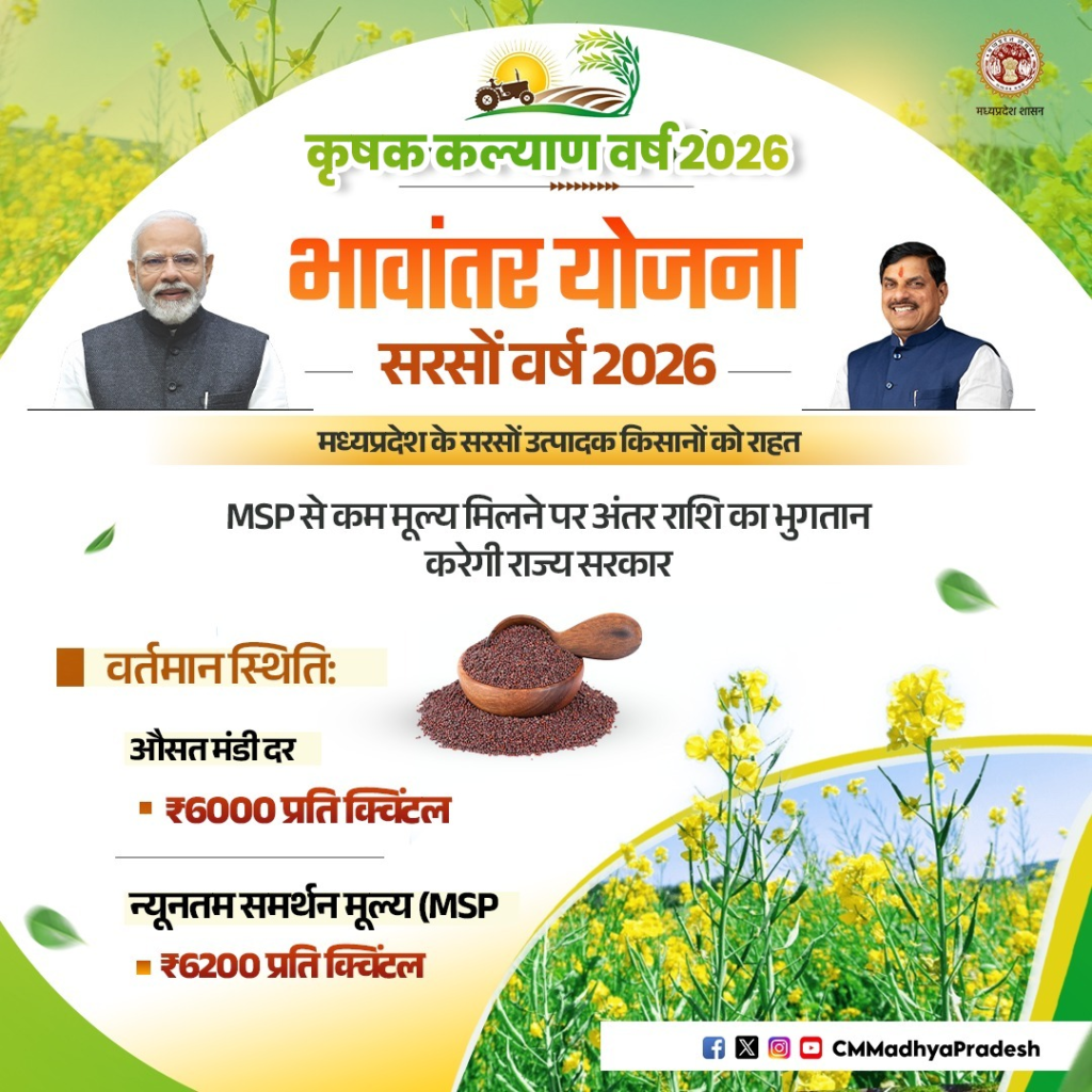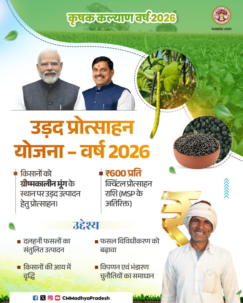 ये भी जानिए Krishak Kalyan Varsh 2026 : मुख्यमंत्री डॉ. यादव ने किसानों के हित में किए बड़े ऐलान, उड़द पर बोनस, सरसों पर मिलेगा भावांतर का लाभ