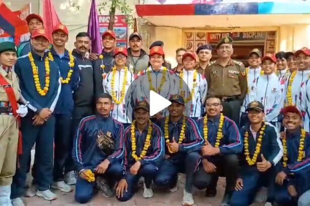 आरडीसी कैंम्प 2025 में बेहतरीन प्रदर्शन कर लौटा 22 सदस्यों का दल मुख्यालय में किया गया शानदार स्वागत जबलपुर : ढोल-नगाड़ों की थाप पर कैडेट्स का शानदार वेलकम हुआ। साउथ सिविल लाइन के महाकौशल कॉलेज के समीप जैसे ही कैडेट्स की बस पहुँची। फूलों की बौछार और ढोल की थाप