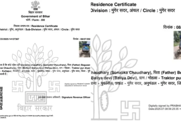 बिहार में सरकारी लापरवाही की अनोखी मिसाल: ट्रैक्टर के नाम जारी हुआ आवासीय प्रमाण पत्र, माता-पिता के नाम पढ़कर चौंक जाएंगे!