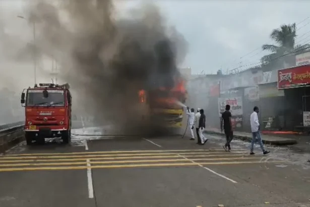 BY: Yoganand Shrivastva महाराष्ट्र: के लातूर जिले के औसा शहर में 15 अगस्त की सुबह एक बड़ा हादसा टल गया। पुणे से लातूर जा रही लोटस ट्रेवल्स की यात्री बस अचानक आग की चपेट में आ गई। बस में सवार करीब 40 से 45 यात्रियों समेत ड्राइवर और कंडक्टर को