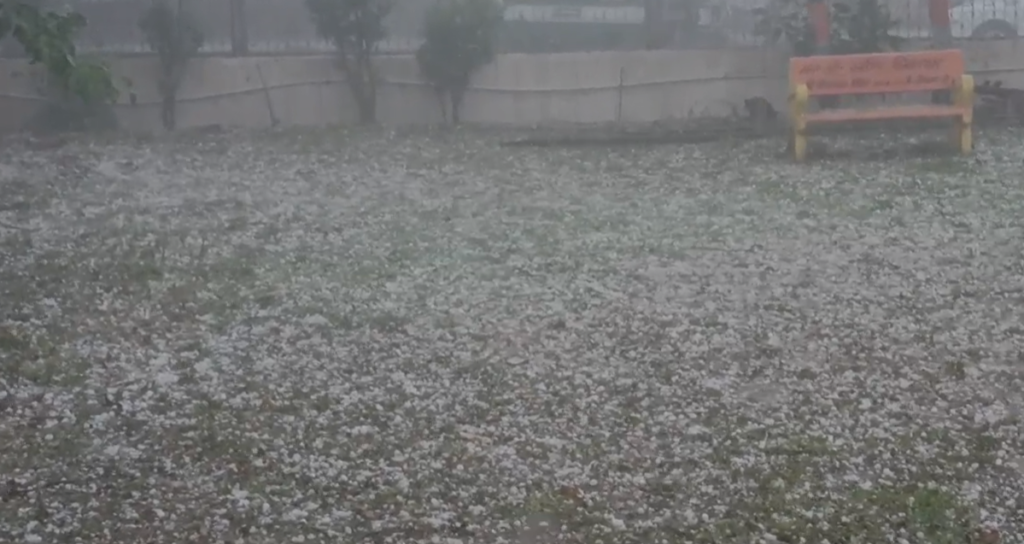 Chhatarpur नौगांव में ‘सफेद आफत’: ओलों से ढकी सड़कें और खेत