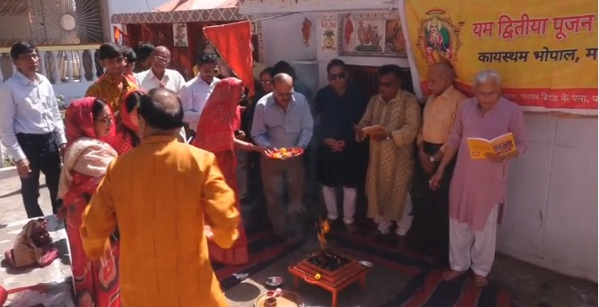 Swadesh News > राज्य > मध्य प्रदेश > Chitragupt Puja : कायस्थम ने भाई दूज पर श्री चित्रगुप्त जी की पूजा कर खेली रंग और गुलाल से होली
