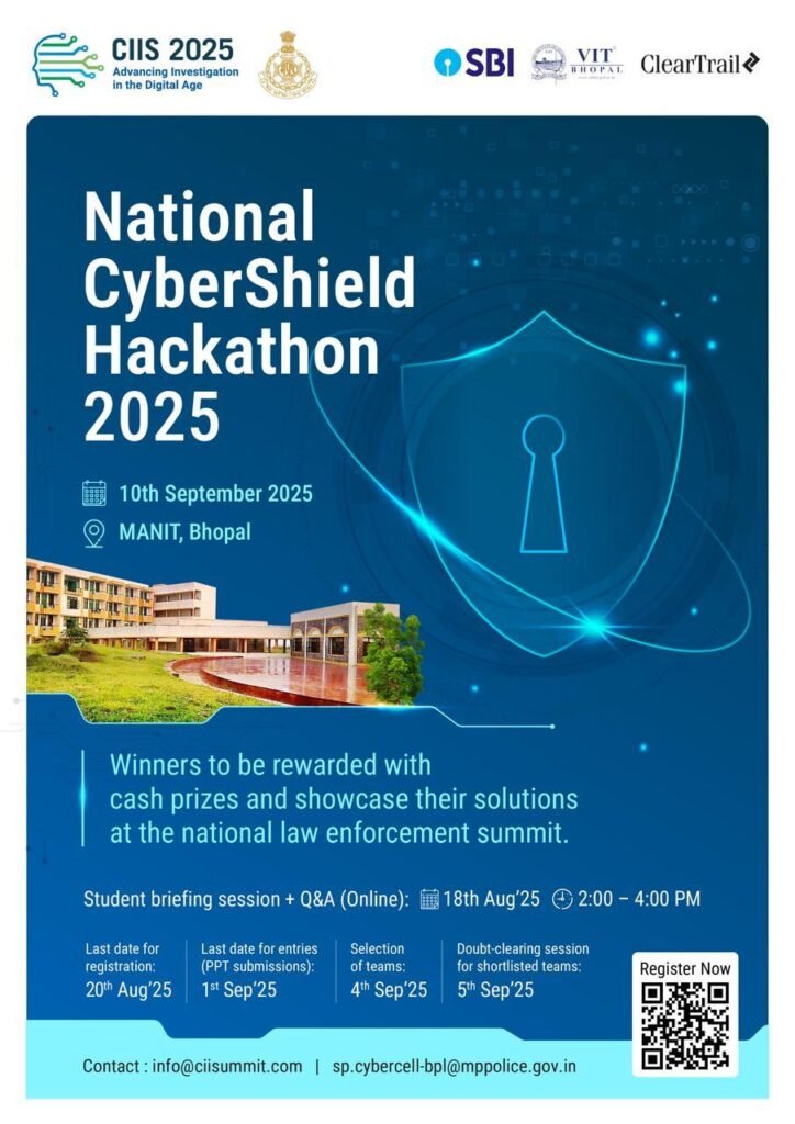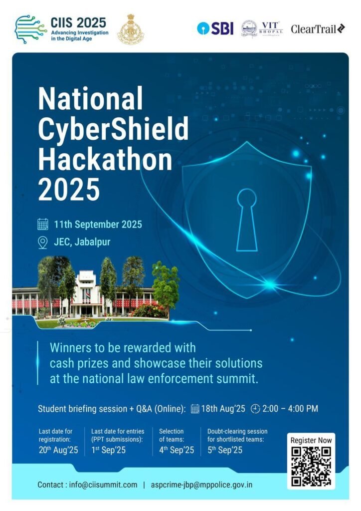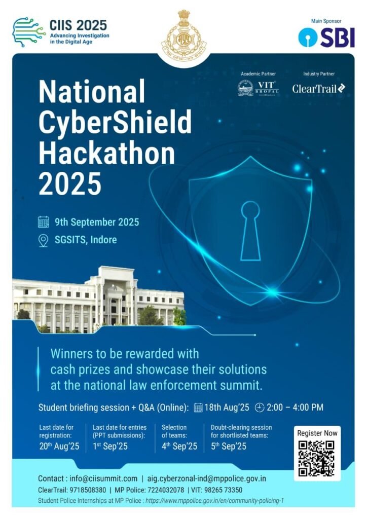 भोपाल: मध्यप्रदेश पुलिस द्वारा आयोजित Cyber Innovation & Information Security Summit (CIIS) 2025 Hackathon को देशभर के युवाओं का शानदार रिस्पॉन्स मिला है। यह आयोजन न सिर्फ एक प्रतियोगिता है, बल्कि साइबर सुरक्षा, डिजिटल नवाचार और पुलिस-युवा सहयोग की दिशा में एक बड़ा कदम है।