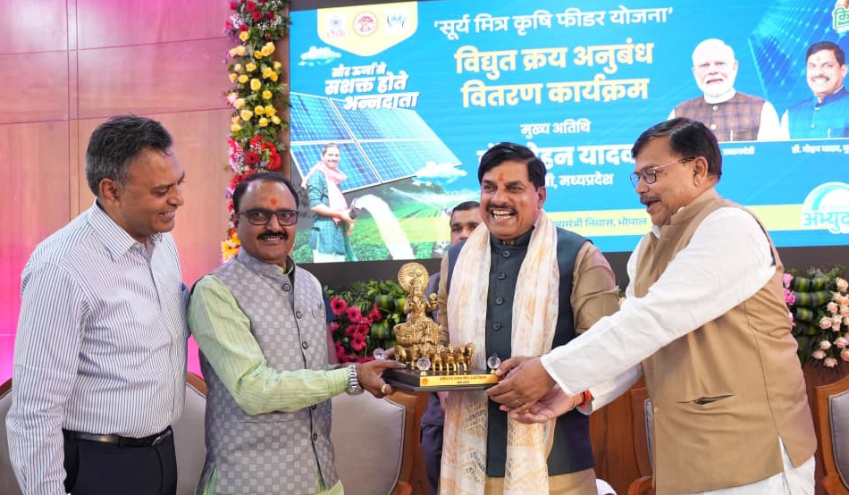 Bhopal मुख्यमंत्री डॉ. मोहन यादव ने अपने जन्मदिवस के पावन अवसर पर प्रदेश के किसानों की समृद्धि के लिए एक बड़े संकल्प को धरातल पर उतारा है। मुख्यमंत्री निवास में आयोजित कार्यक्रम में उन्होंने ‘सूर्य मित्र कृषि फीडर योजना’ के अंतर्गत विद्युत क्रय अनुबंधों का वितरण किया। इस योजना के माध्यम से प्रदेश के लगभग 8 लाख सिंचाई पंप सीधे सूर्य की शक्ति यानी सौर ऊर्जा से संचालित होंगे।