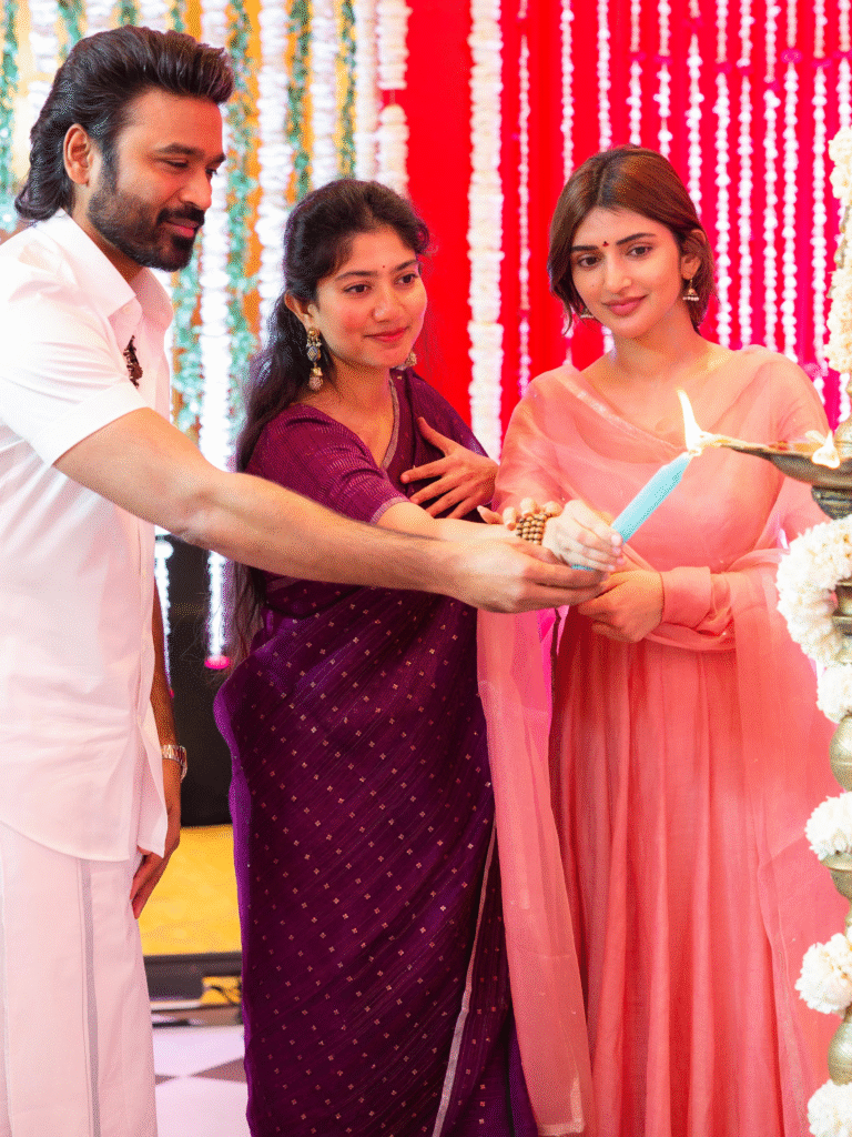 D55 Shooting Begins: साउथ सुपरस्टार धनुष और श्रीलीला की बहुप्रतीक्षित फिल्म D55 (अस्थायी नाम) की शूटिंग आधिकारिक रूप से शुरू हो गई है। मेकर्स ने शनिवार को फिल्म के सेट से पहली तस्वीरें साझा कीं, जिनमें फिल्म की टीम के साथ साउथ की मशहूर अभिनेत्री साई पल्लवी भी नजर आईं। शूटिंग शुरू होने से पहले सेट पर पारंपरिक पूजा-अर्चना की गई, जिसके बाद फिल्म का पहला शॉट लिया गया।