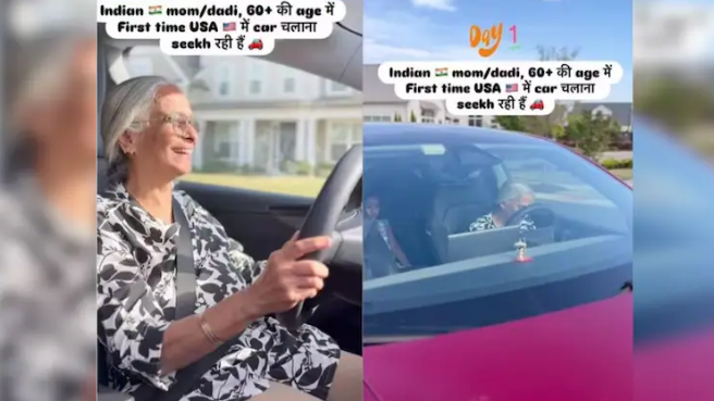 DesiDadi ViralVideo : अक्सर कहा जाता है कि सीखने की कोई उम्र नहीं होती, और इस बात को एक भारतीय बुजुर्ग महिला ने सच कर दिखाया है। अमेरिका में रह रहीं करीब 60 वर्षीय महिला का एक वीडियो सोशल मीडिया पर तेजी से वायरल हो रहा है, जिसमें वह पहली बार कार चलाते हुए नजर आ रही हैं।