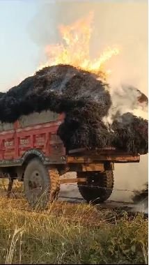 Dewas: A trolley full of harvested wheat crop suddenly caught fire