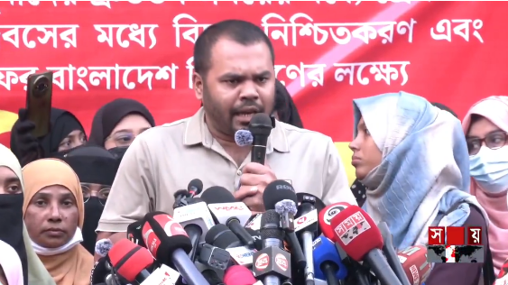 कार्यक्रम में इंकलाब मंच के सचिव अब्दुल्लाह अल जाबेर ने सरकार को 30 दिनों का अल्टीमेटम देते हुए कहा कि तय समय सीमा में हत्यारों की पहचान और गिरफ्तारी नहीं हुई तो आंदोलन तेज किया जाएगा। जाबेर ने आरोप लगाया कि यह हत्या किसी एक व्यक्ति का काम नहीं बल्कि एक संगठित सिंडिकेट की साजिश है। उन्होंने कहा कि किसी भी राजनीतिक दल को शक से ऊपर नहीं रखा जा सकता।