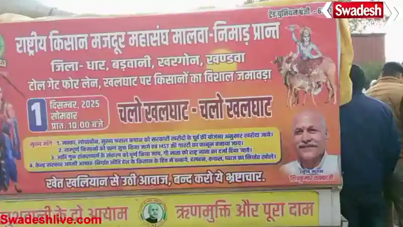 धार: खलघाट टोल गेट पर किसानों का महाकुंभ शुरू, मुंबई–आगरा राष्ट्रीय राजमार्ग पर यातायात डायवर्ट
