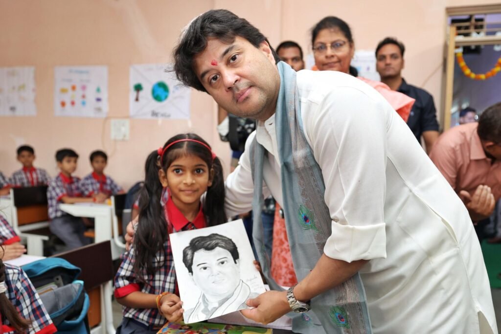 सिंधिया ने बच्चों की कक्षाओं और एक्टिविटी रूम का भ्रमण करते हुए उनसे संवाद भी किया तथा उन्हें वाटर प्यूरीफायर, कंप्यूटर, खेल सामग्री, संगीत यंत्र और पुस्तकें भेंट कीं साथ ही उन्होंने विद्यालय के संचालन एवं शिक्षण वातावरण की सराहना करते हुए सभी को उज्ज्वल भविष्य की शुभकामनाएँ दीं।