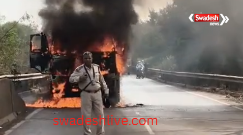 Durg Breaking: A truck traveling over the Kharun River caught fire, a major accident was averted due to the driver's presence of mind.