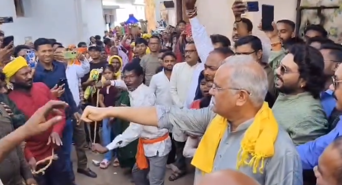 कुम्हारी में इस मौके पर बड़ी संख्या में स्थानीय लोग और समर्थक मौजूद रहे। भूपेश बघेल का सोटा प्रहार सहने का यह दृश्य उनकी पारंपरिक लोक आस्था को दर्शाता है।