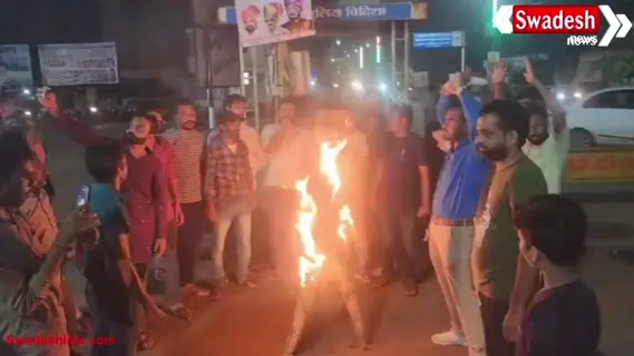 भड़काऊ पोस्ट डालने के विरोध में विदिशा में किया गया पुतला दहन