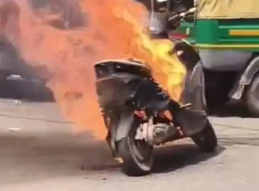 कुछ ही मिनटों में स्कूटी पूरी तरह जलकर खाक हो गई।