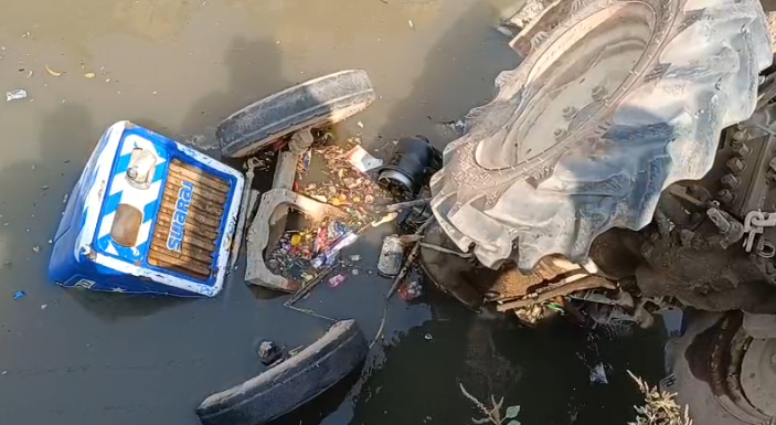 Firozabad: Major accident on Raina Road, tractor loaded with cement and gunpowder falls into drain