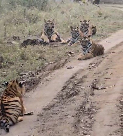जंगल सफारी के रास्ते पर काफी देर बैठे रहे टाइगर्स