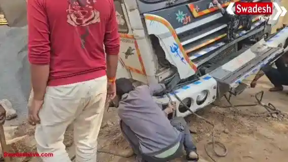 जानकारी के अनुसार, डंपर सड़क के झुकने से एक तरफ झुक गया और मकान पर गिरने से केवल बाल-बाल बचा। इस घटना से इलाके में हड़कंप मच गया और बड़े हादसे की आशंका जताई गई।