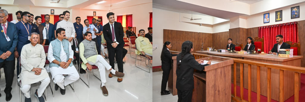 मुख्यमंत्री डॉ. यादव ने ज्ञानवीर विश्वविद्यालय के नवनिर्मित परिसर का उद्घाटन करशैक्षणिक सुविधाओं का जायजा लिया, जिसमें विशेष रूप से विधि (Law) के छात्र-छात्राओं के लिए तैयार की गई मूट कोर्ट (Moot Court) आकर्षण का केंद्र रही। मूट कोर्ट एक प्रकार की कृत्रिम या नकली न्यायिक कार्यवाही होती है। इसमें कानून की पढ़ाई कर रहे छात्र एक काल्पनिक कानूनी मामले पर वास्तविक अदालत की तरह बहस करते हैं। इसका मुख्य उद्देश्य छात्रों को वास्तविक अदालती कार्यवाही और प्रोटोकॉल की बारीकियां सिखाना, न्यायिक तर्क और पैरवी की कला में निपुण बनाना, मुकदमेबाजी और कानूनी दस्तावेजीकरण का व्यावहारिक अनुभव प्रदान करना है।