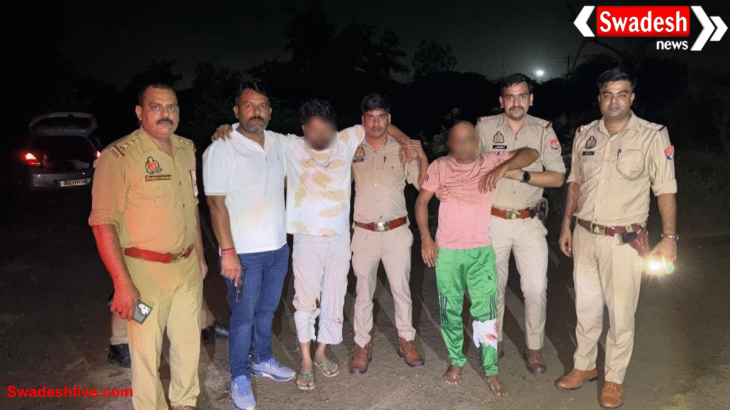 हापुड़ में पुलिस और बदमाशों की मुठभेड़, 3 गिरफ्तार, चोरी के मंदिर घण्टे बरामद