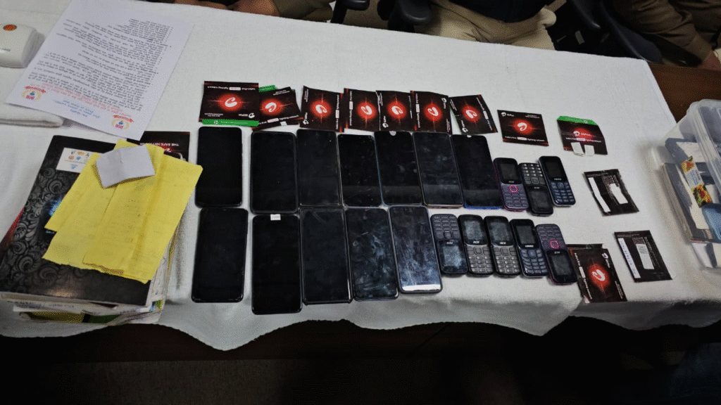 Hazaribagh News: सूचना के आधार पर अनुमंडल पुलिस पदाधिकारी सदर अमित कुमार (भा.पु.से.) के नेतृत्व में छापामारी दल का गठन किया गया। टीम ने त्वरित कार्रवाई करते हुए मौके से 09 अभियुक्तों को रंगे हाथों गिरफ्तार कर लिया।छापेमारी के दौरान अपराधियों के पास से एक मारुति सुजुकी ब्रेजा कार, 27 मोबाइल फोन, 07 सिम कार्ड और 23 रजिस्टर/कॉपी बरामद किए गए हैं, जिनमें ठगी के शिकार लोगों के नाम और मोबाइल नंबर दर्ज थे।