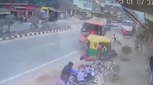 तेज रफ्तार बस ने ऑटो रिक्शा को मारी जोरदार ठोकर, 1 की मौत, 6 गंभीर रूप से घायल