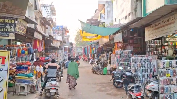 बेमेतरा के मुख्य बाजार में अवैध अतिक्रमण, दुकानदारों ने सड़क पर फैला रखा सामान