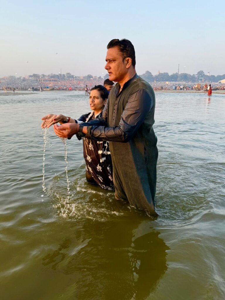महाकुम्भ की आस्था में ओतप्रोत नजर आए अनिल कुंबले, त्रिवेणी संगम में किया पावन स्नान