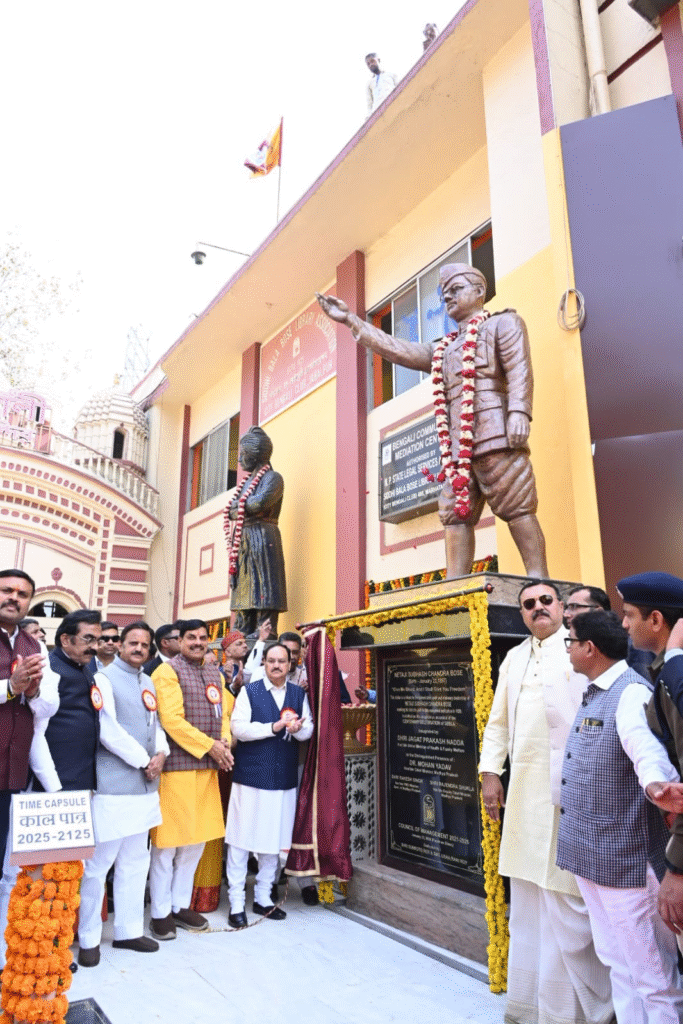 मुख्यमंत्री डॉ. यादव और केन्द्रीय मंत्री श्री नड्डा ने सिद्धी बाला बोस लायब्रेरी एसोसिएशन के शताब्दी वर्ष समापन समारोह पर नेताजी सुभाष चन्द्र बोस की प्रतिमा का अनावरण किया। उन्होंने सिटी बंगाली क्लब में शताब्दी स्तंभ का लोकार्पण भी किया। इस अवसर पर उप मुख्यमंत्री श्री राजेन्द्र शुक्ल और लोक निर्माण मंत्री श्री राकेश सिंह अन्य अतिथि भी मौजूद रहे।