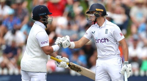 दूसरी पारी में इंग्लैंड की शुरुआत खास नहीं रही। दूसरे ही ओवर में जैक क्रॉली कैच आउट हुए। उन्होंने 7 गेंदों पर 8 रन की पारी खेली। इसके बाद बेन डकेट और जैकब बेथेल के बीच दूसरे विकेट लिए 187 रनों की साझेदारी हुई। 38वें ओवर में जैकब बेथेल कैच आउट हुए। उन्होंने 118 गेंदों पर 96 रन ठोके। 211 के स्कोर पर टिम साउथी ने बेन डकेट को 92 के स्कोर पर बोल्ड किया। इसके बाद हैरी ब्रूक ने अर्धशतक लगाया। उन्होंने 5 चौकों की मदद से 61 गेंदों पर 55 रन बनाए।