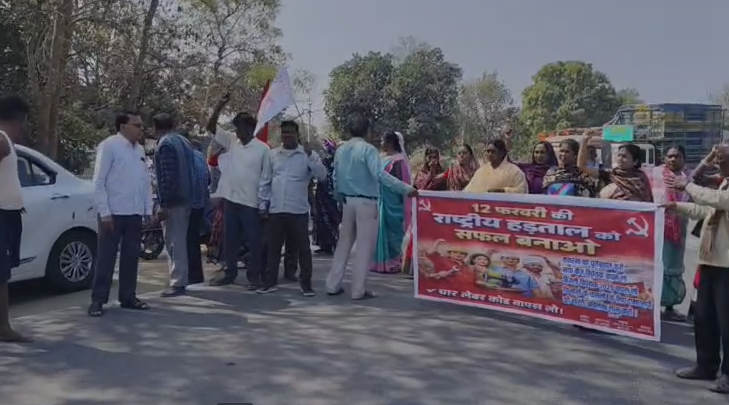 Jamtara : केंद्रीय श्रमिक संगठनों, ग्रामीण मजदूर संघों और मनरेगा संघर्ष मोर्चा के साझा आह्वान पर आज जामताड़ा जिले में राष्ट्रीय आम हड़ताल का व्यापक असर देखा गया। अपनी विभिन्न मांगों को लेकर आक्रोशित कार्यकर्ताओं ने न केवल शहर के मुख्य चौकों पर प्रदर्शन किया, बल्कि हाईवे को भी निशाना बनाया। दोपहर के समय प्रदर्शनकारियों के सड़क पर बैठने से आवाजाही पूरी तरह ठप रही।