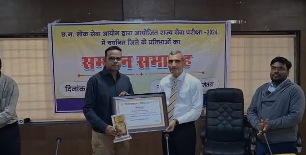 बेमेतरा: सीजीपीएससी 2024 में चयनित अभ्यर्थियों का कलेक्टर रणबीर शर्मा ने किया सम्मान