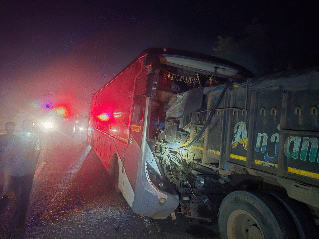 कांकेर एनएच-30 पर बस और ट्रक की टक्कर, 12 घायल